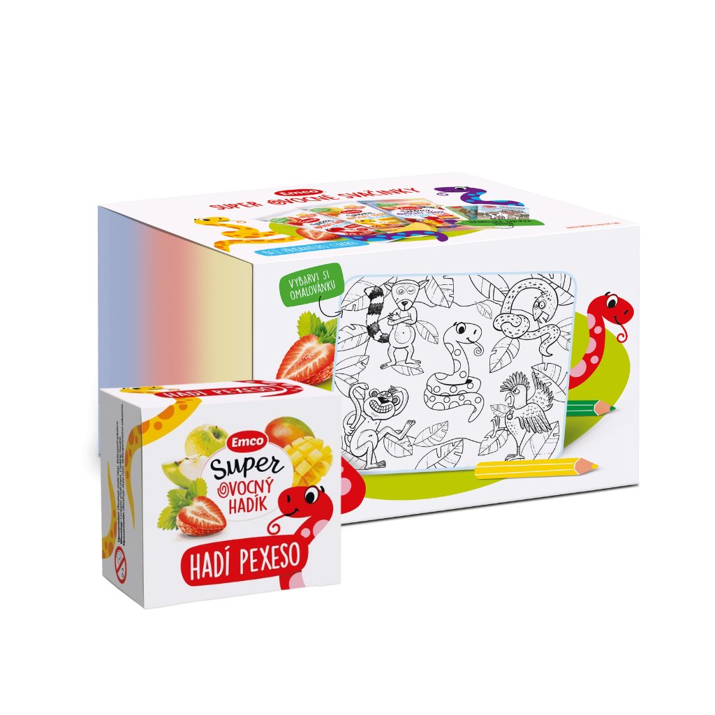 Tento sladký snack vám okrem prirodzenej chuti jabĺk a jahôd poskytne aj extra porciu zábavy. V každom balení nájdete zberateľskú kartičku a v kartóne nájdete aj zábavnú hru pre celú rodinu - jedinečné hadie pexeso. Skôr spotrebujete 26 snackov, alebo nájdete 13 párov hadov a ich zvieracích kamarátov? 😊
