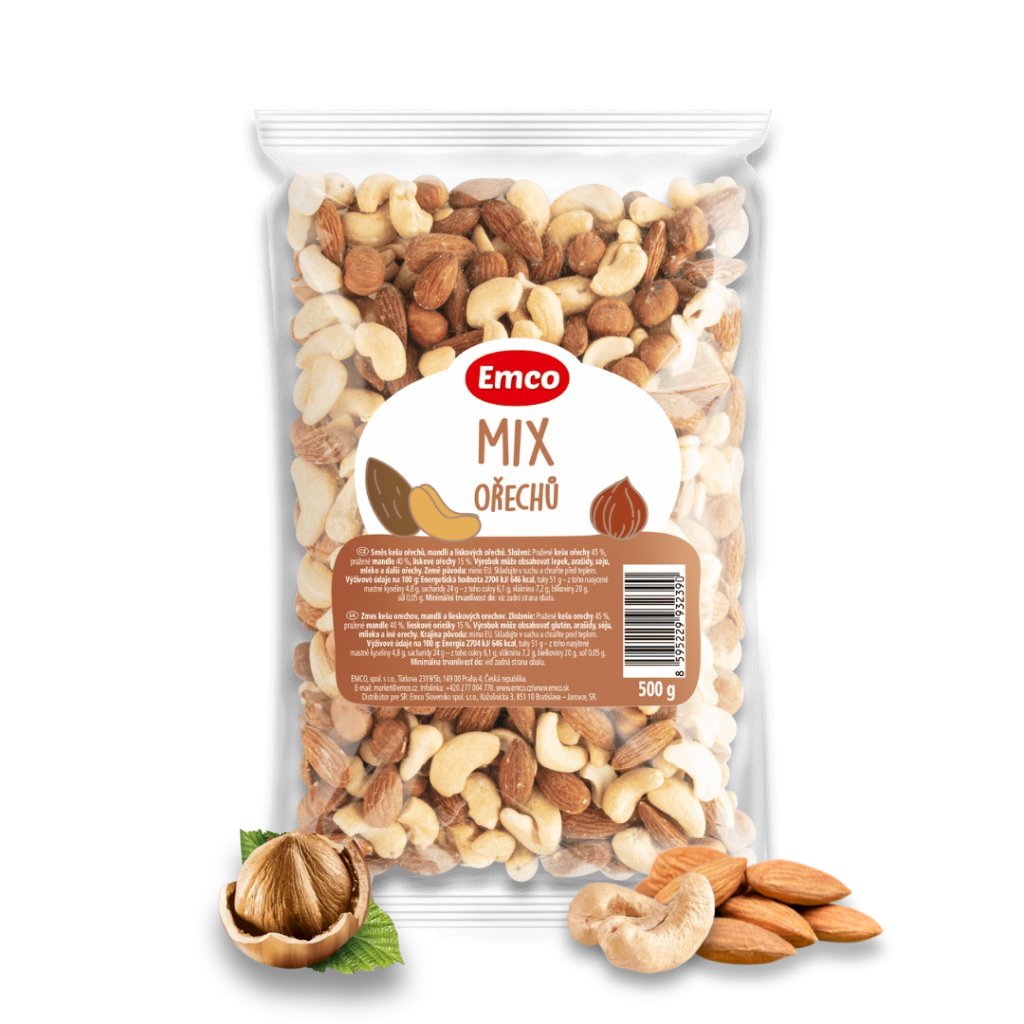 Vyskúšajte dokonalú trojicu chutí v jednom balení! Emco Mix orechov spája jemné kešu, chrumkavé mandle a výrazné lieskové orechy v harmonickej zmesi, ktorá poteší milovníkov prírodných a poctivých surovín. Každý druh orecha má svoju nezameniteľnú chuť aj výživové benefity – dokopy tvoria zmes, ktorá ťa zasýti, dodá energiu a skvelo chutí.