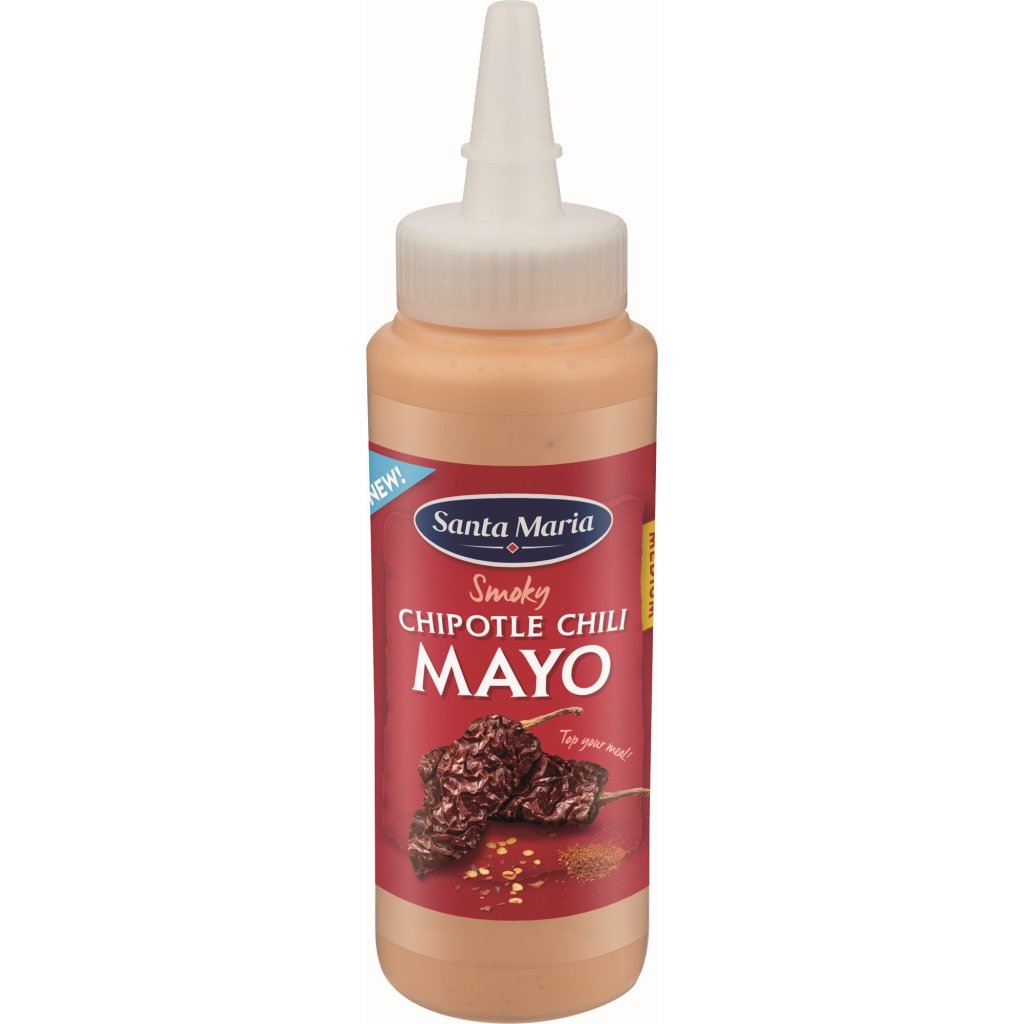 Santa Maria Mayo Chipotle Chili je ideálnou voľbou pre tých, ktorí hľadajú jemne pikantnú omáčku s údeným nádychom. Táto krémová majonéza s chipotle papričkami (údené chilli) dodá vašim jedlám výraznú, mierne údenú a pikantnú chuť. Výborne sa hodí k burgerom, tacos, sendvičom, grilovanému mäsu, zelenine alebo ako dip k hranolkám a vyprážaným jedlám.