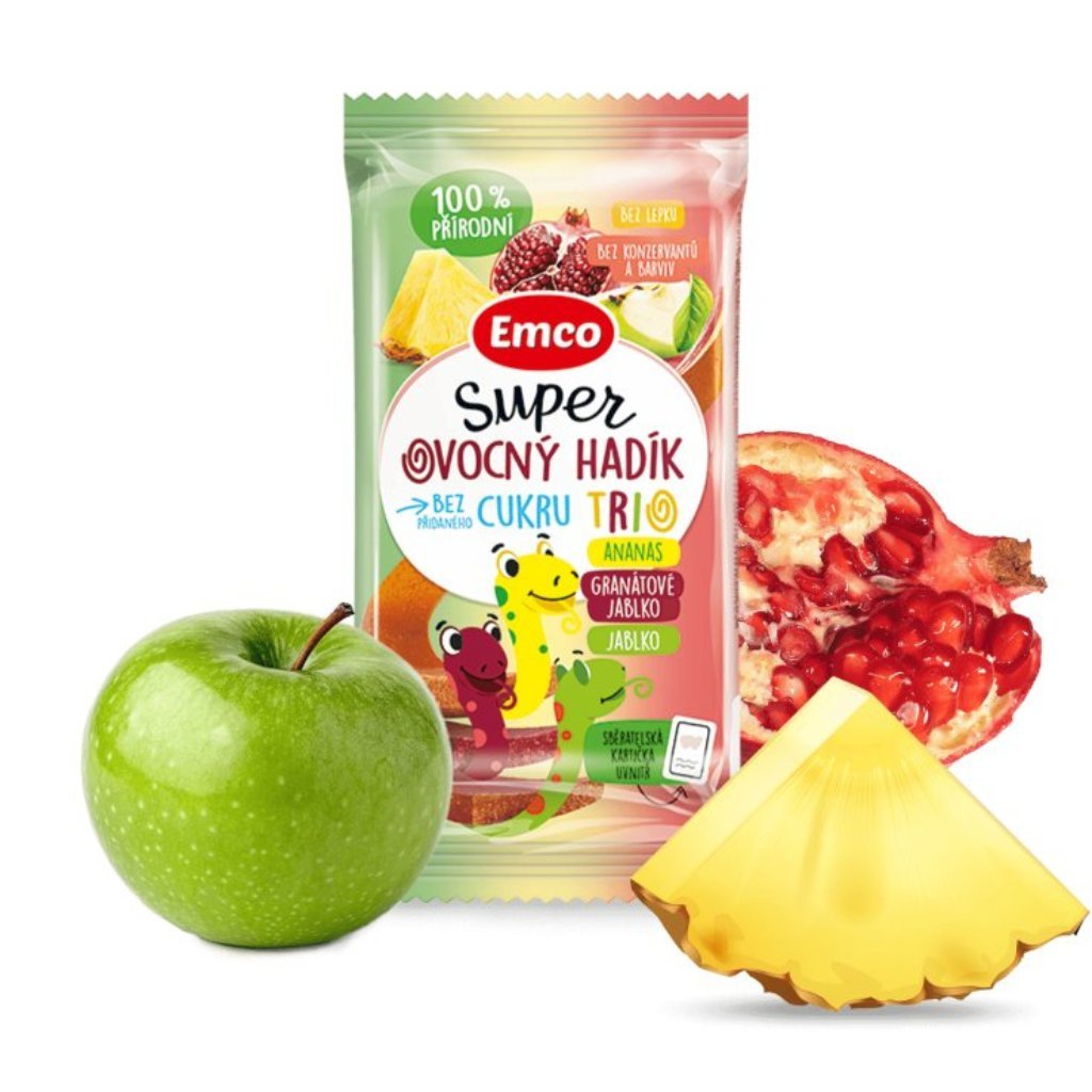 Super ovocný hadík TRIO Ananás, Granátové jablko a Jablko (Ovocné rolky 20 g)