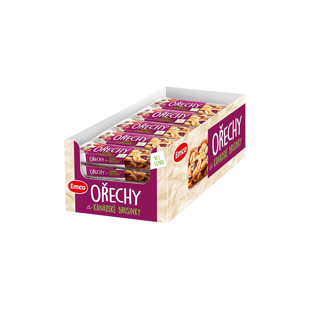 Tyčinka s orechmi a kanadskými brusnicami, kartón 20x35 g